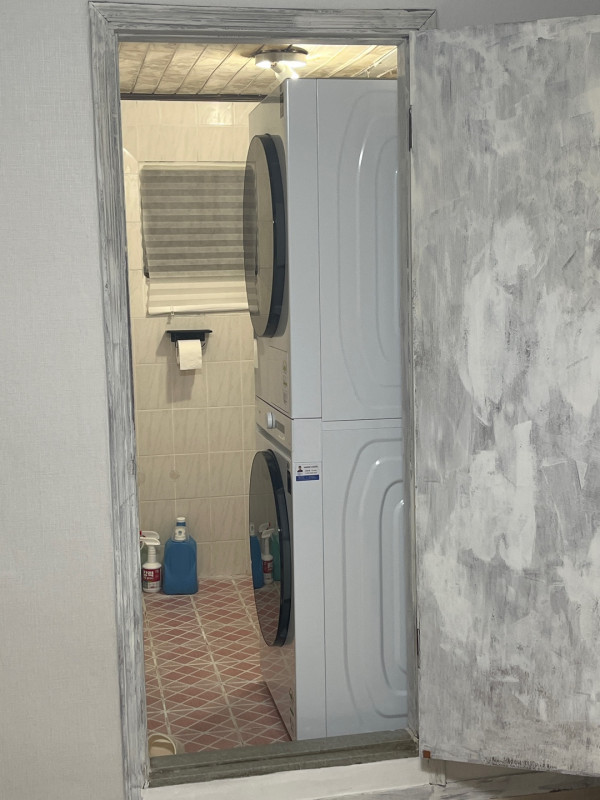 위아래 붙어있는 원바디라 자리차지도 적어서 화장실에 쏙 들어가네요.